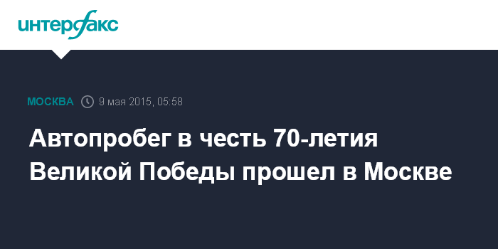 Москва. 9 мая. INTERFAX.RU - Автопробег в честь 70-летия Победы в Великой Отечественной войне провели в Москве "Молодая Гвардия Единой России" (МГЕР) и Федерация гоночных команд.