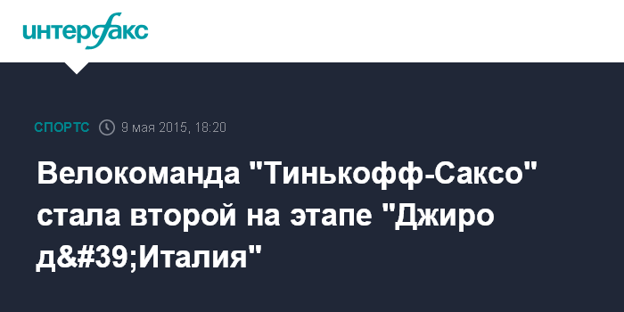 Велокоманда "Тинькофф-Саксо" стала второй на этапе "Джиро д'Италия"