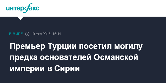 Москва. 10 мая. INTERFAX.RU - Премьер-министр Турции Ахмет Давутоглу посетил расположенную на территории Сирии могилу предка основателей Османской империи - Сулейман-шаха, сообщают в воскресенье западные СМИ.