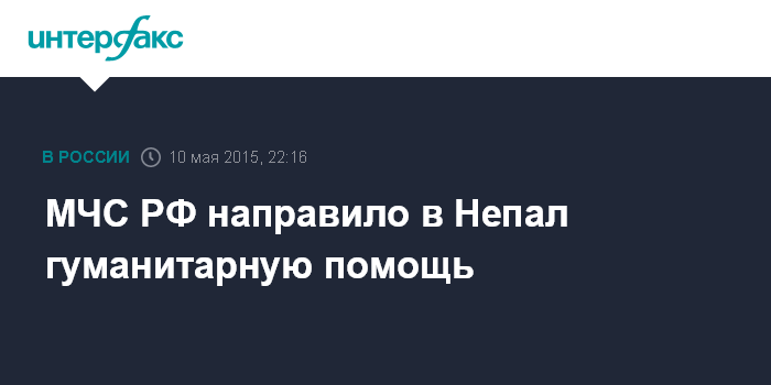 Москва. 10 мая. INTERFAX.RU - МЧС России направляет в пострадавший от разрушительного землетрясения Непал бутилированную воду в качестве гуманитарной помощи, сообщили "Интерфаксу" в воскресенье в пресс-службе МЧС.