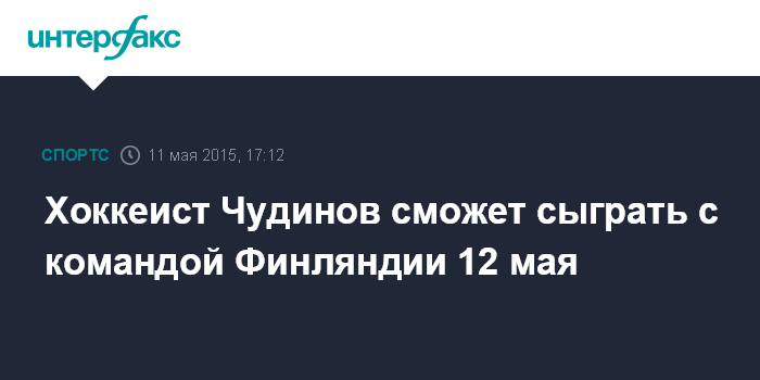Хоккеист Чудинов сможет сыграть с командой Финляндии 12 мая