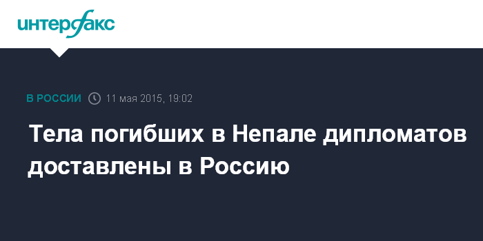 Москва. 11 мая. INTERFAX.RU - Тела российских дипломатов Алексея Липеева и Марии Яковлевой, которые погибли в результате разрушительного землетрясения в Непале, доставлены в Россию. Как передает корреспондент "Интерфакса", самолет Ил-76 МЧС России с телами россиян прибыл из Непала на подмосковный аэродром Раменское в 18:05.