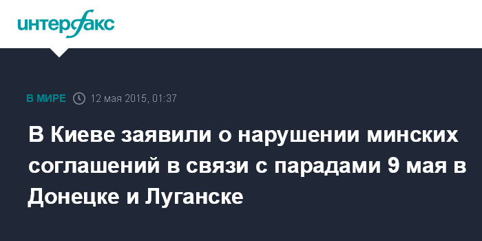 Москва. 12 мая. INTERFAX.RU - Министерство иностранных дел Украины рассматривает проведение военных парадов 9 мая в Донецке и Луганске как грубое нарушение Минских соглашений.