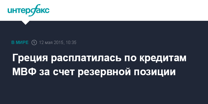 Из-за дефицита ликвидности Греция использовала для погашения резервную позицию в МВФ на сумму около 650 млн евро, пишет во вторник греческое издание Kathimerini без указания источника. Резервы должны быть возмещены в течение одного месяца.