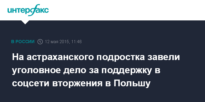 На астраханского подростка завели уголовное дело за поддержку в соцсети вторжения в Польшу