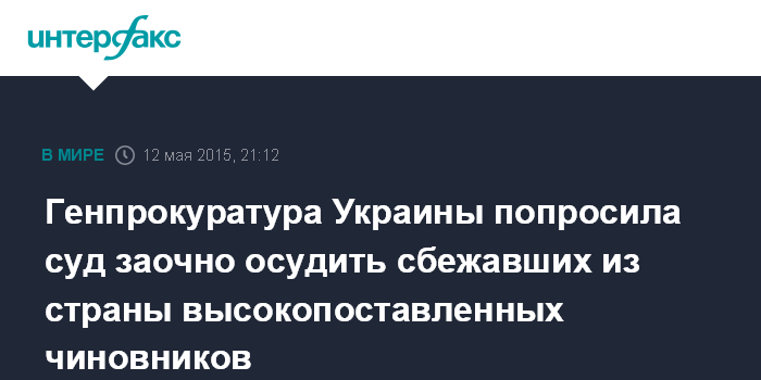 Москва. 12 мая. INTERFAX.RU - Генеральная прокуратура Украины обратилась в суд для применения процедуры заочного осуждения относительно ряда бывших высокопоставленных лиц, сбежавших из Украины, что позволит экстрадировать их, заявил генеральный прокурор Виктор Шокин.