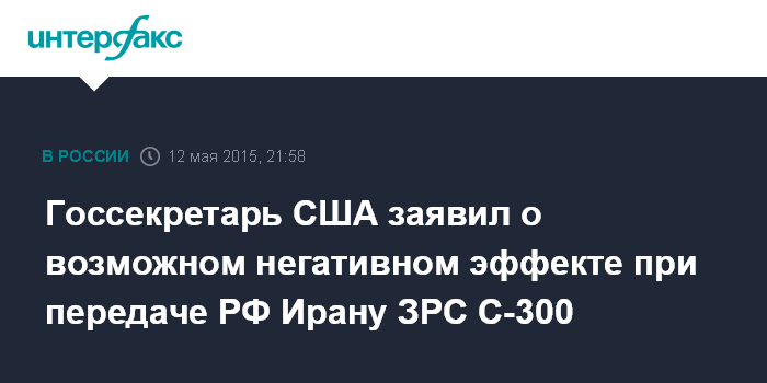 Москва. 12 мая. INTERFAX.RU - США озабочены решением России о передаче Ирану системы С-300, это может иметь очень негативный эффект, заявил госсекретарь США Джон Керри.