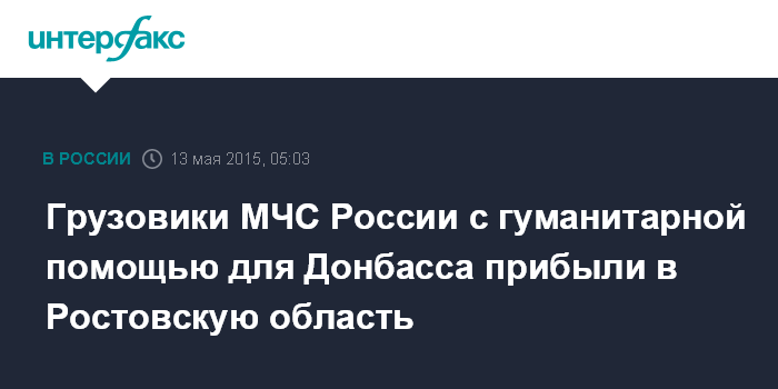 Москва. 13 мая. INTERFAX.RU - Автомобили, которые войдут в состав 26-й гуманитарной автоколонны МЧС России для жителей Донбасса, прибыли в Ростовскую область, сообщили "Интерфаксу" в Национальном центре управления в кризисных ситуациях МЧС РФ.