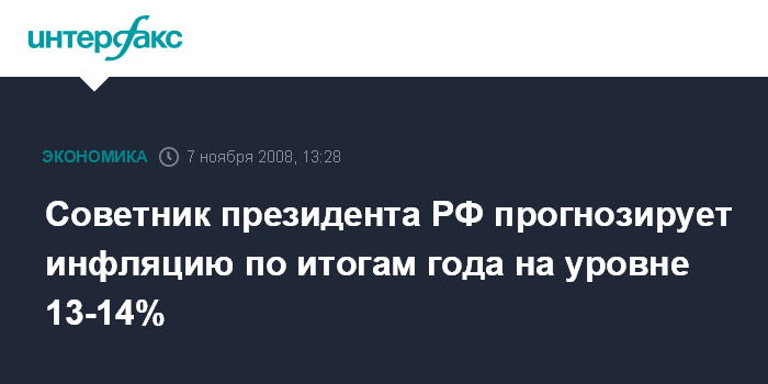 Советник президента РФ прогнозирует инфляцию по итогам года на уровне 13-14%