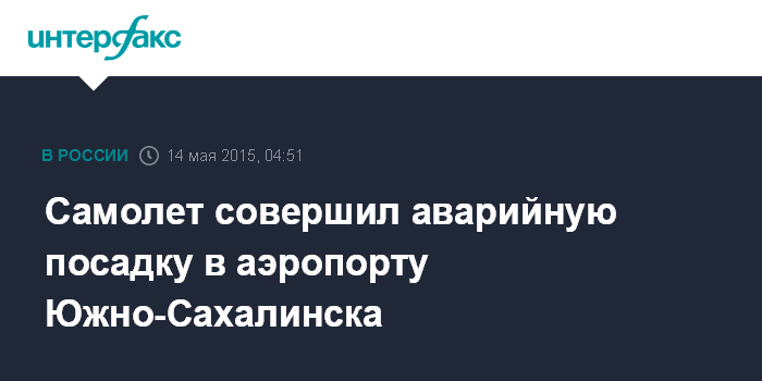 Москва. 14 мая. INTERFAX.RU - Самолет авиакомпании "Аврора" в четверг совершил аварийную посадку в аэропорту Южно-Сахалинска, пострадавших нет.