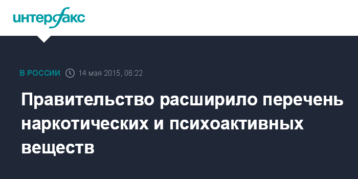 Москва. 14 мая. INTERFAX.RU - Премьер-министр России Дмитрий Медведев подписал постановление правительства о расширении перечня наркотических и психоактивных веществ и их прекурсоров, сообщает в четверг сайт кабинета министров.