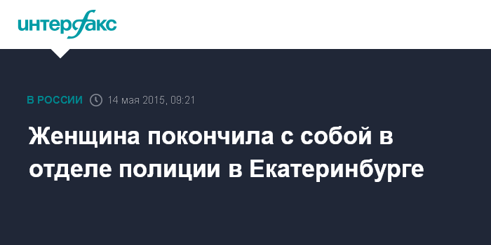 Москва. 14 мая. INTERFAX.RU -Задержанная за мелкое хулиганство женщина совершила самоубийство в отделе полиции Екатеринбурга, сообщает пресс-служба ГУ МВД РФ по Свердловской области в четверг.