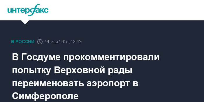 Москва. 14 мая. INTERFAX.RU - В Госдуме расценили как вмешательство в дела РФ попытку Верховной рады Украины переименовать аэропорт в Симферополе.