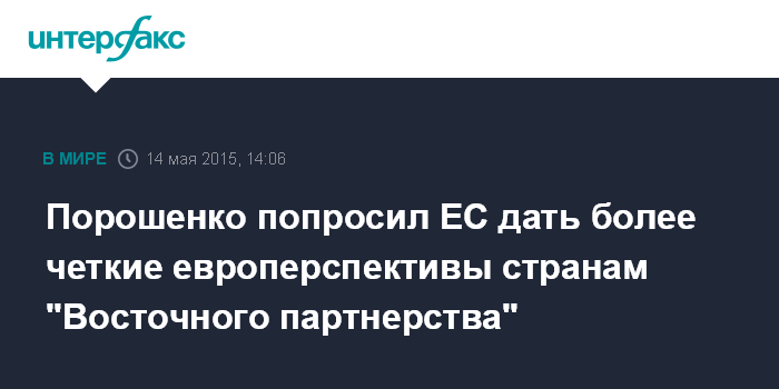 Порошенко также призвал ЕС предоставить более четкие европейские перспективы странам "Восточного партнерства", которые твердо заявили о своих европейских устремлениях. Этот проект ЕС призван расширять связи с шестью странами бывшего СССР: Украиной, Молдавией, Азербайджаном, Арменией, Грузией и Белоруссией.