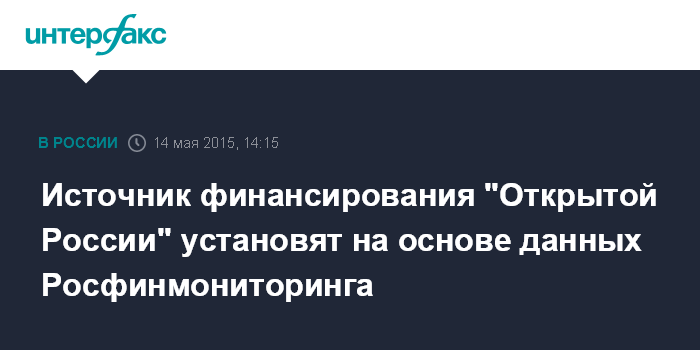 Москва. 14 мая. INTERFAX.RU - Для проверки возможного финансирования общественной организации "Открытая Россия" из-за рубежа будут анализироваться данные Росфинмониторинга, сообщил глава Минюста Александр Коновалов.