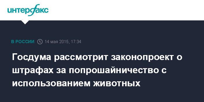 В проекте дается определение этому явлению и предлагается установить за подобные действия административный штраф в размере от 2 до 5 тысяч рублей. За попрошайничество с использованием животных, повлекшее вред здоровью или смерть животного, предлагается наказывать штрафом от 5 до 10 тысяч рублей.