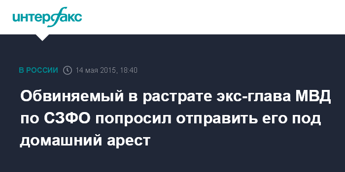 Обвиняемый в растрате экс-глава МВД по СЗФО попросил отправить его под домашний арест
