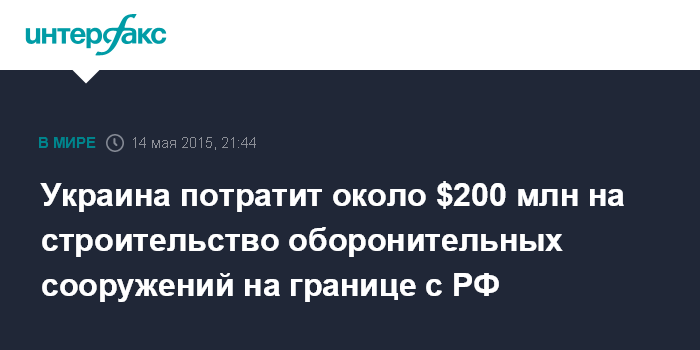 Украина потратит около $200 млн на строительство оборонительных сооружений на границе с РФ