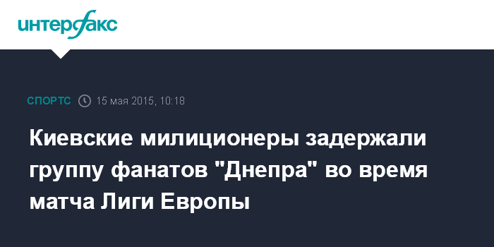 Москва. 15 мая. INTERFAX.RU - Киевские милиционеры задержали на несколько часов группу агрессивно настроенных украинских болельщиков во время футбольного матча между командами "Днепр" (Украина) и "Наполи" (Италия) в четверг.