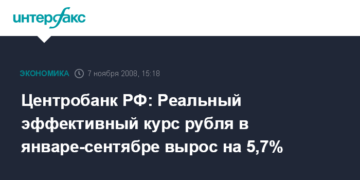 Центробанк РФ: Реальный эффективный курс рубля в январе-сентябре вырос на 5,7%