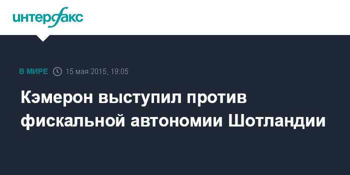 Премьер также пообещал выполнить в полной мере предложения так называемой комиссии Смита, сформированной после референдума о независимости Шотландии, которые направлены на обеспечение большей самостоятельность Шотландии.