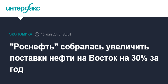 "Роснефть" собралась увеличить поставки нефти на Восток на 30% за год