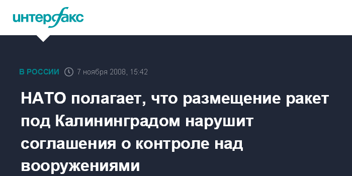 НАТО полагает, что размещение ракет под Калининградом нарушит соглашения о контроле над вооружениями