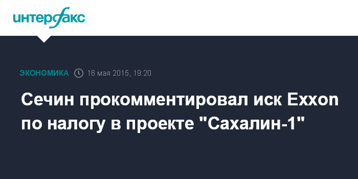Сечин прокомментировал иск Exxon по налогу в проекте "Сахалин-1"