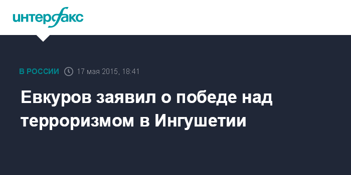 Москва. 17 мая. INTERFAX.RU - Глава Ингушетии Юнус-Бек Евкуров заявляет, что терроризм в республике побежден.
