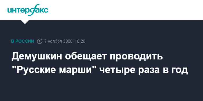 "Формат акции "Русский марш", которая проходит один раз в год, 4 ноября, нас не устраивает. И мы приняли решение проводить подобные акции четыре раза в год - весной, осенью, зимой и летом", - заявил в пятницу "Интерфаксу" один из организаторов "русского марша", лидер "Славянского союза" Дмитрий Демушкин.
