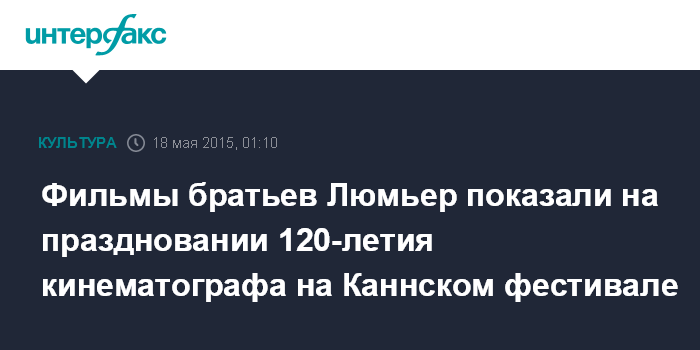 В Театре Люмьер, главной площадке Каннского фестиваля, прошел показ отреставрированных фильмов, снятых братьями Люмьер в 1895-1905 годах. Многие из работ были показаны впервые. 1895 год официально считается годом рождения киноиндустрии - в декабре 1895 года в салоне "Гранд кафе" состоялся первый публичный платный кинопоказ.