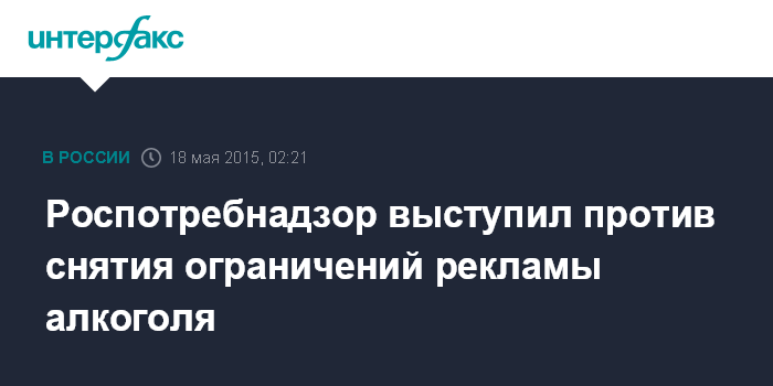 Москва. 18 мая. INTERFAX.RU - Роспотребнадзор заявил о недопустимости отмены ограничений, действующих в отношении рекламы алкогольной продукции.