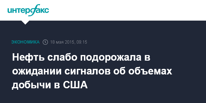 Москва. 18 мая. INTERFAX.RU - Нефть слабо дорожает в понедельник в ожидании новых сигналов об объемах добычи в США, сообщает агентство Bloomberg.