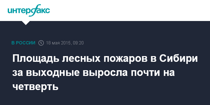 Москва. 18 мая. INTERFAX.RU - Площадь лесных пожаров в Сибири, по данным на утро понедельника, составляет 46 тыс. 542,3 га, зарегистрировано 70 лесных пожаров, сообщает департамент лесного хозяйства по СФО.
