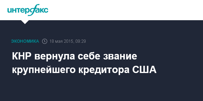 Москва. 18 мая. INTERFAX.RU - Китай в марте вернул себе звание крупнейшего держателя казначейских облигаций США (US Treasuries).