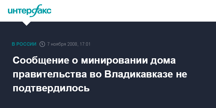Москва. 7 ноября. INTERFAX.RU - Информация о заложенном взрывном устройстве в доме правительства Северной Осетии не подтвердилась, сообщил и.о. министра внутренних дел республики Сослан Сикоев.