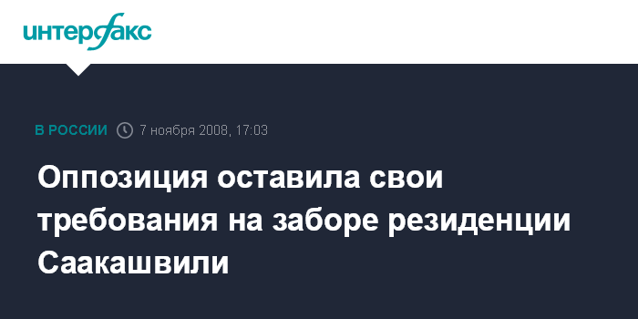 Оппозиция требует проведения досрочных президентских и парламентских выборов, освобождения политзаключенных, обеспечения свободы СМИ и возвращения телекомпании "Имеди" семье покойного бизнесмена Бадри Патаркацишвили, а также усовершенствования избирательного законодательства.