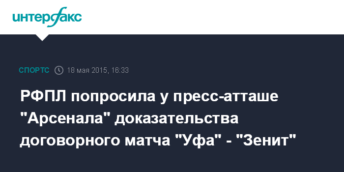РФПЛ попросила у пресс-атташе "Арсенала" доказательства договорного матча "Уфа" - "Зенит"