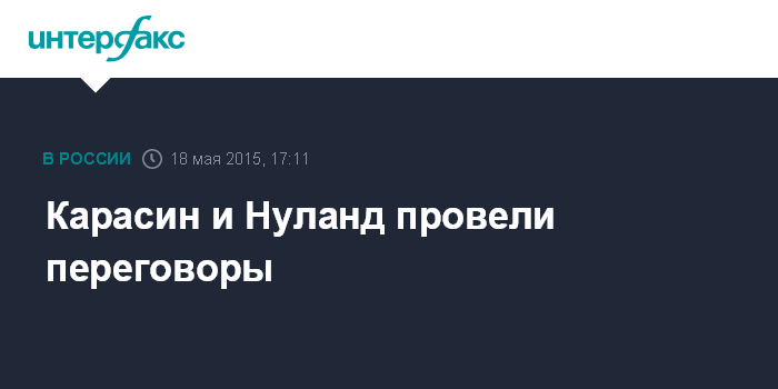 Москва. 18 мая. INTERFAX.RU - Замглавы МИД РФ Григорий Карасин и замгоссекретаря США Виктория Нуланд обсудили возможные варианты взаимодействия России и США в украинском урегулировании и подчеркнули важность налаживания прямого диалога Киева с ДНР и ЛНР.