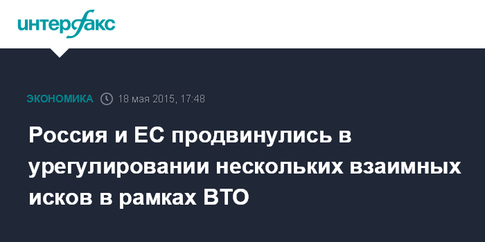 Москва. 18 мая. INTERFAX.RU - Россия и ЕС достигли подвижек в вопросе досудебного урегулирования двух-трех взаимных исков в ВТО, заявил министр экономического развития Алексей Улюкаев.