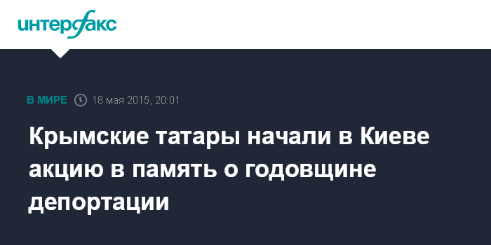 Москва. 18 мая. INTERFAX.RU - Представители крымскотатарского народа проводят в Киеве на Майдане Независимости акцию, посвященную памяти 71-й годовщины депортации из Крыма.