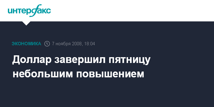 Москва. 7 ноября. INTERFAX.RU - Доллар незначительно вырос к рублю по итогам последнего торгового дня недели. Итогом пятницы стало повышение курса американской валюты на 4,5 копейки, до 26,98 руб./$1. Евро снизился на ММВБ на 7,6 копейки, до 34,5 руб./EUR1, на фоне разнонаправленных колебаний курса единой европейской валюты на Forex. Ставки МБК к окончанию дня заметно снизились.