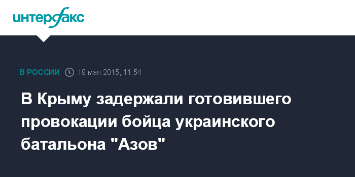 Москва. 19 мая. INTERFAX.RU - Задержанный в Крыму боец украинского добровольческого батальона "Азов", участвующего в силовой операции Киева на востоке Украины, пытался организовать провокации во время мероприятий, посвященных памяти жертв депортации крымских татар в 1944 году, утверждает вице-премьер республики Крым Руслан Бальбек.