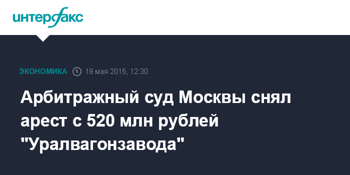 12 мая Арбитражный суд Москвы наложил арест на денежные средства "Уралвагонзавода" и входящего в него "ЧТЗ-Уралтрак" на сумму 523,5 млн рублей.
