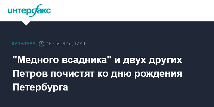 "Медного всадника" и двух других Петров почистят ко дню рождения Петербурга