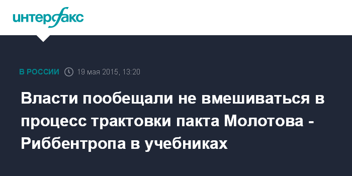 Так Мединский ответил на вопрос "Интерфакса", нашла ли его трактовка пакта Молотова-Риббентропа как способа обеспечения безопасности СССР, отражение в новой линейке школьных учебников по истории.
