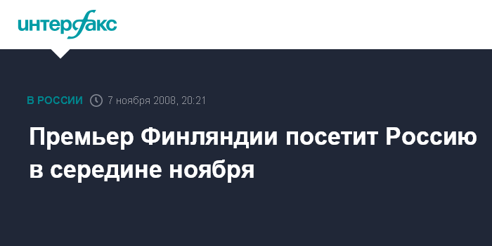 Москва. 7 ноября. INTERFAX.RU - Премьер-министр Финляндии Матти Ванханен 12 ноября посетит Россию с рабочим визитом по приглашению председателя правительства РФ Владимира Путина, сообщает в пятницу пресс-служба российского правительства.