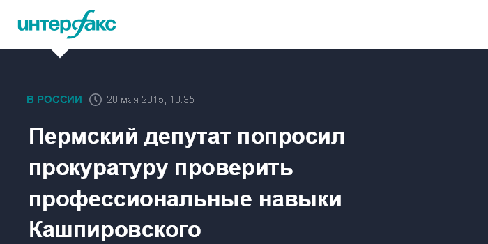 Москва. 20 мая. INTERFAX.RU - Прокуратура Пермского края проведет проверку по запросу депутата Законодательного собрания региона Александра Телепнева, который просит выяснить, имеет ли право психотерапевт Анатолий Кашпировский проводить свои публичные сеансы.