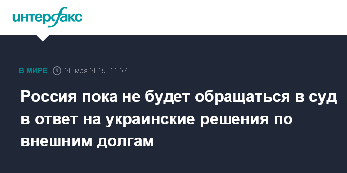 Россия пока не будет обращаться в суд в ответ на украинские решения по внешним долгам