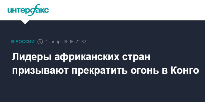 Москва. 7 ноября. NTERFAX.RU - Лидеры африканских стран призвали к немедленному прекращению огня в Демократической республике Конго (ДРК) и к усилению полномочий миротворцев ООН, передает в пятницу британская телерадиокорпорация Би-Би-Си.